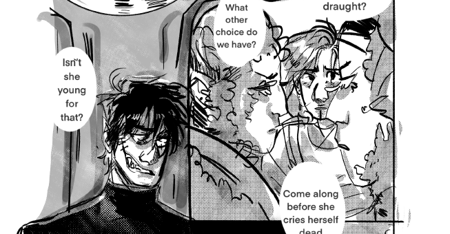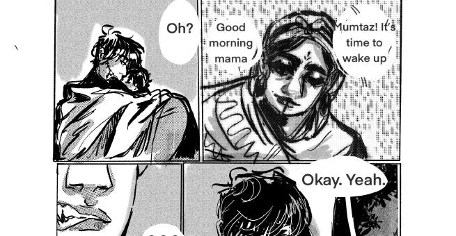 AUTUMN CROSS-MAN-SERB (she/her) is a Winnipeg born muslim Metis and Libyan artist and illustrator who works primarily within the fantasy/scifi and romance genres of comics and art, when she is not working on romance and found family narratives, she is a freelance instructor teaching digital art at the Winnipeg Art Gallery or working at Little Sister Coffee Maker.